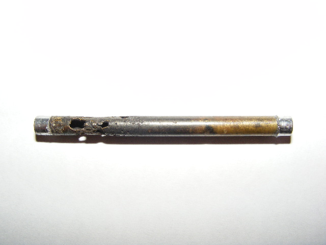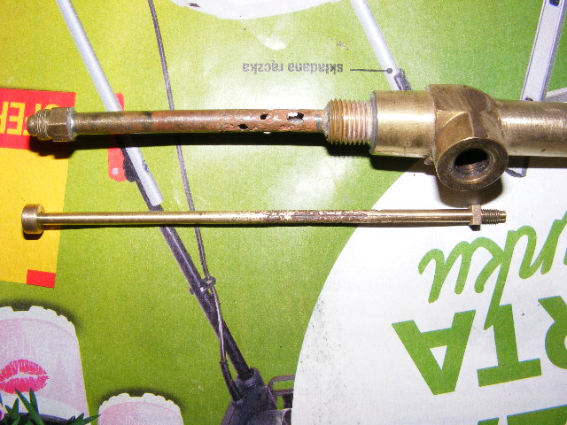 Lampa oczywiście będzie używana zgodnie z przeznaczeniem. Niebieska oksyda uroku doda...Heart No i dzisiaj podszedłem na maxa do Petromaxa Smile Rozbiórka poszła bez najmniejszych problemów. Jednak demontując poszczególne części przeraziłem się widząc co jest w zbiorniku i jaki jest stan elementów tych zanurzonych normalnie w nafcie AngryAngryAngry Rurki(zdjęcia poniżej) całkowicie skorodowane brrr... Dziury takie jakby leżały w ziemi od wojny, a były tylko zielone przy wyciągnięciu. Serce mi zabiło o zbiornik, ale o tym za chwilę. Rurki wymienię samemu. Ta od rapida jest dodatkowo pęknięta prawie na całej długości, pękniecie kończy się 1,5 cm od dolnego sitka, i prawie przy górnym gwincie. Rurka od parownika wygląda jak pepesza leżąca w wodzie przez 70 lat. Na szczęście zaworki i sitka ok, reszta też. Rurka rapida ma zewnętrzna średnicą fi 3 mm. Muszę obciąć ją ok.1,4 cm nad sitkiem, tak samo obciąć ciut przed gwintem, na to przyjdzie rurka fi4, w środku 3,2 mm i zalutuję to LC30 na wymiar. Rurka parownika ma zewnętrzną średnicę fi 5 - rozlutuję starą i wstawię najbliższą dostępną fi 5,4 mm i tak samo lut na LC30 na wymiar. Na szczęście wszystko w tej lampie jest lutowane starą dobrą technologią lutowania twardego. Teraz zbiornik. Zacząłem się trząść na myśl o jakiejkolwiek dziurze w płaszczu czy dnie. Walczyłem jeszcze kilka godzin z osadem - twardym jak skała, aż zaczęło pojawiać się srebrzyste dno. Obecnie odmaczają się ostatnie naloty. Zbiornik wygląda na cały i nie widać w nim jakiejkolwiek korozji. Może uda mi się zrobić inspekcję wewnątrz specjalną kamerą, to zamieszczę zdjęcia. Dno zbiornika jest cynowane, tak samo połączenie dna zbiornika z płaszczem - jest co prawda na szew, ale szczelność zapewnia cyna. Nie polecam nikomu skrobania np.: śrubokrętem po dnie, ta cyna to m.in. zabezpieczenie antykorozyjne, a najwięcej osadu - czarnego szlamu było właśnie na dnie. I tak zszedł przy lampie prawie cały dzionek Tongue