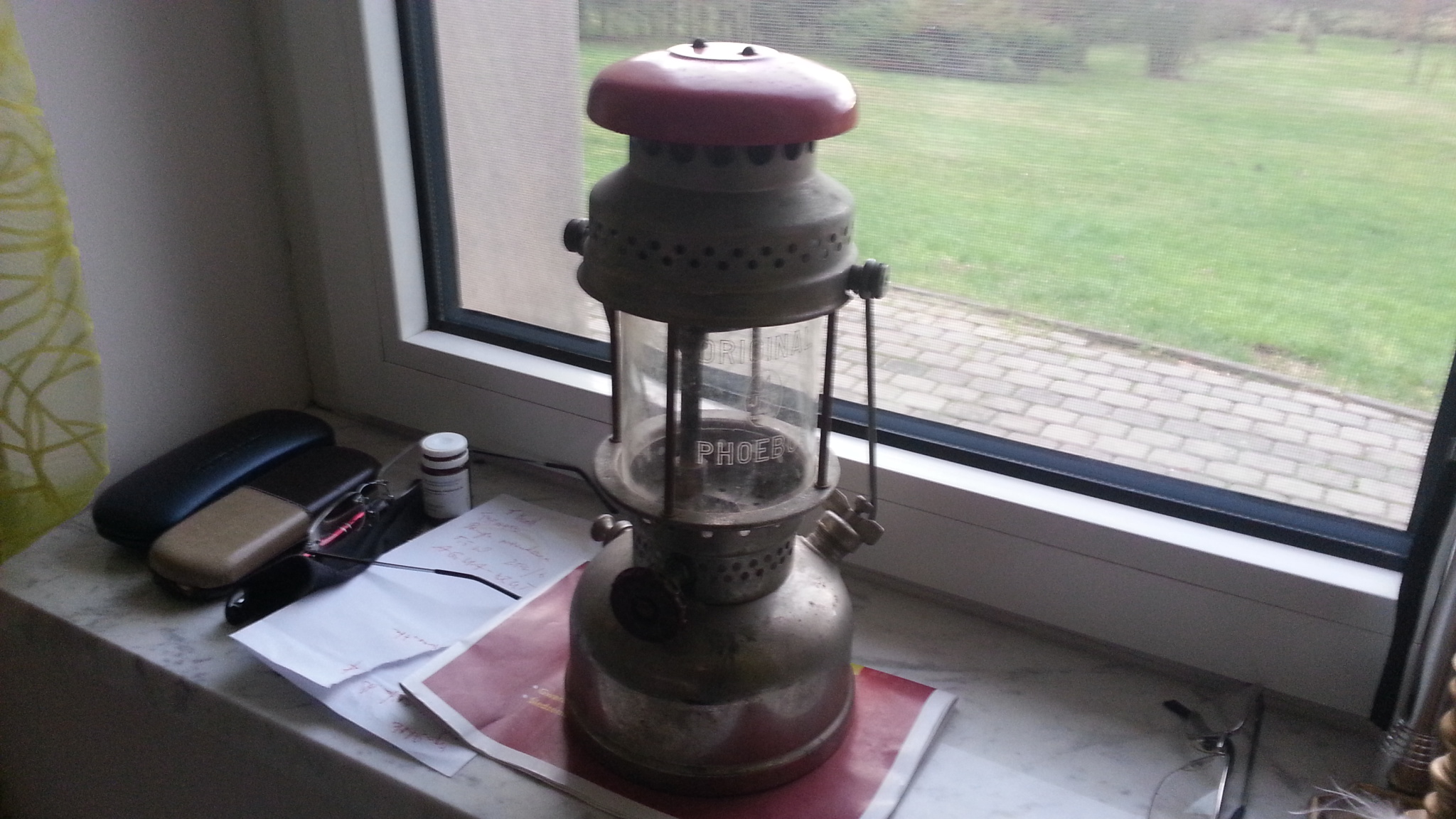 . Its a very nice lamp and not seen that often. It looks in fine condition and you are a very Lucky man to have that original glass. If I was you I would replace it with a "User"-glass when firing the lamp up. I think it will look stunning after just a bit of cleaning. The burnerparts should all fit from a ex. Petromax-type.