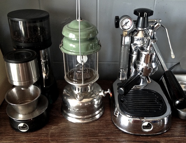 Taka kawiarka na kuchenkę dobrze nadaje się do postawienia na petromaxa zamiast górnej czapeczki