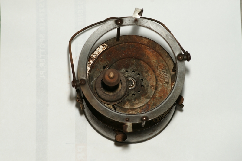Dalej. W cylinderku tłoczka wkręcony jest zaworek petromaxa (pewnie ten sam gwint) - stawiam więc, że była jakoś niedawno palona. To też mogło by potwierdzać szczelność zbiornika.