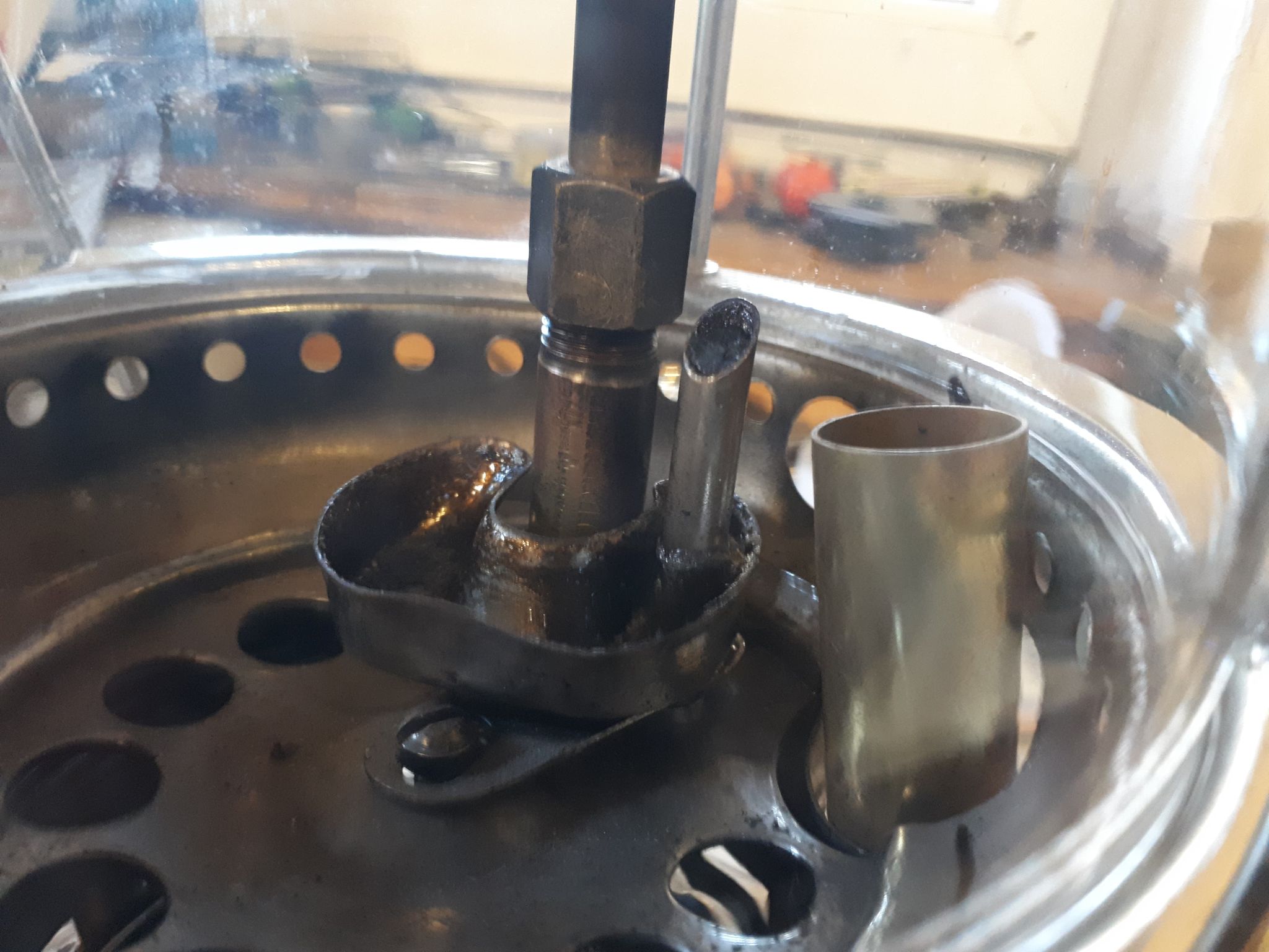 Wcześniej zawsze wlewałem do nerki zwykły denaturat. Spalał się czysto pozostawiając najwyżej delikatny osad. Ale ostatnio nigdzie nie mogłem dostać denaturatu. Był tylko jakiś DYNATUROT zawierający 60% etanolu, czyli taki jakiś bimber. Oraz DENATURAL firmy Dragon, który według etykiety zawiera 90% IPA. Wziałem ten izopropanol. Pali się przyzwoicie, ale w nerce pozostaje strasznie dużo szlamu, a w tej rurce wychodzącej z nerki zrobił się kożuch, który przytkał jej wylot. To zapewne te 10%, które nie jest izoprpanolem. Załączam zdjęcie.