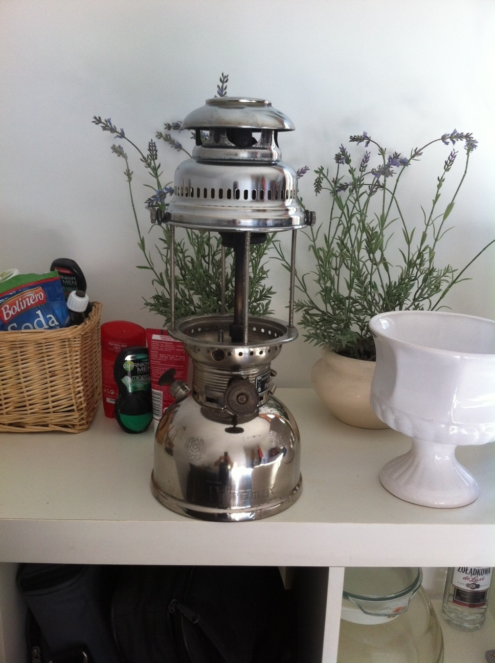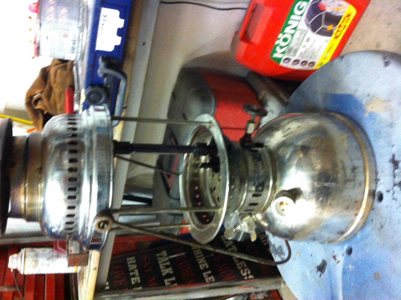 Lampę odpalałem bez przeglądu po prostu nalałem nafty i odpaliłem.Po zgaszeniu oczyściłem ją i przejrzałem,okazało się że jedna rurka w gażniku nie była dokręcona i wystąpił płomień poza siatką.Po demontażu siatka się rozpadła więc założę nową siatkę i spróbuje ponownie odpalić lampę.