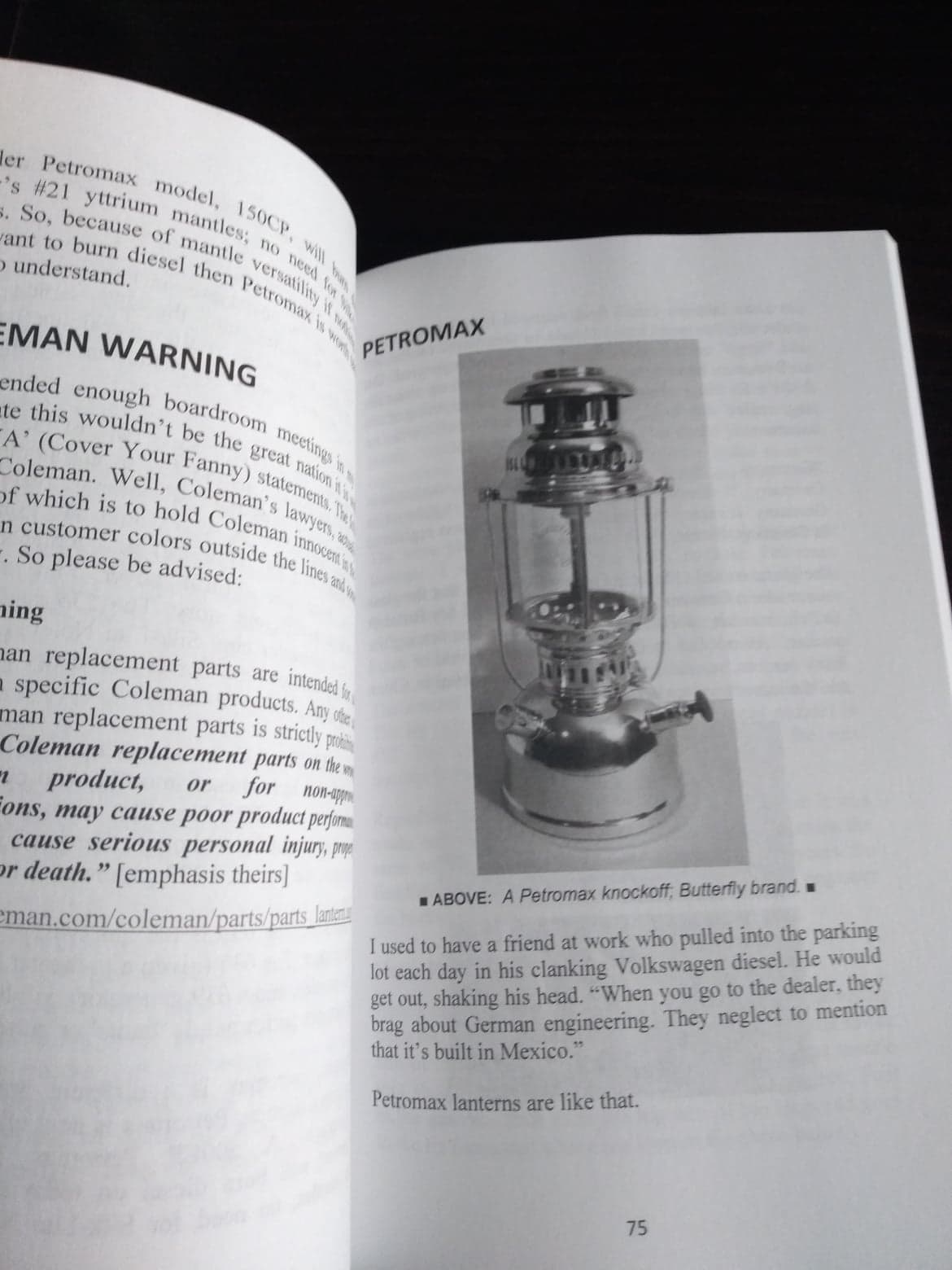Żeby nie czekać... właśnie zamówiłem swoją - gość wydał też książkę o colemanach i zwykłych knotówkach.