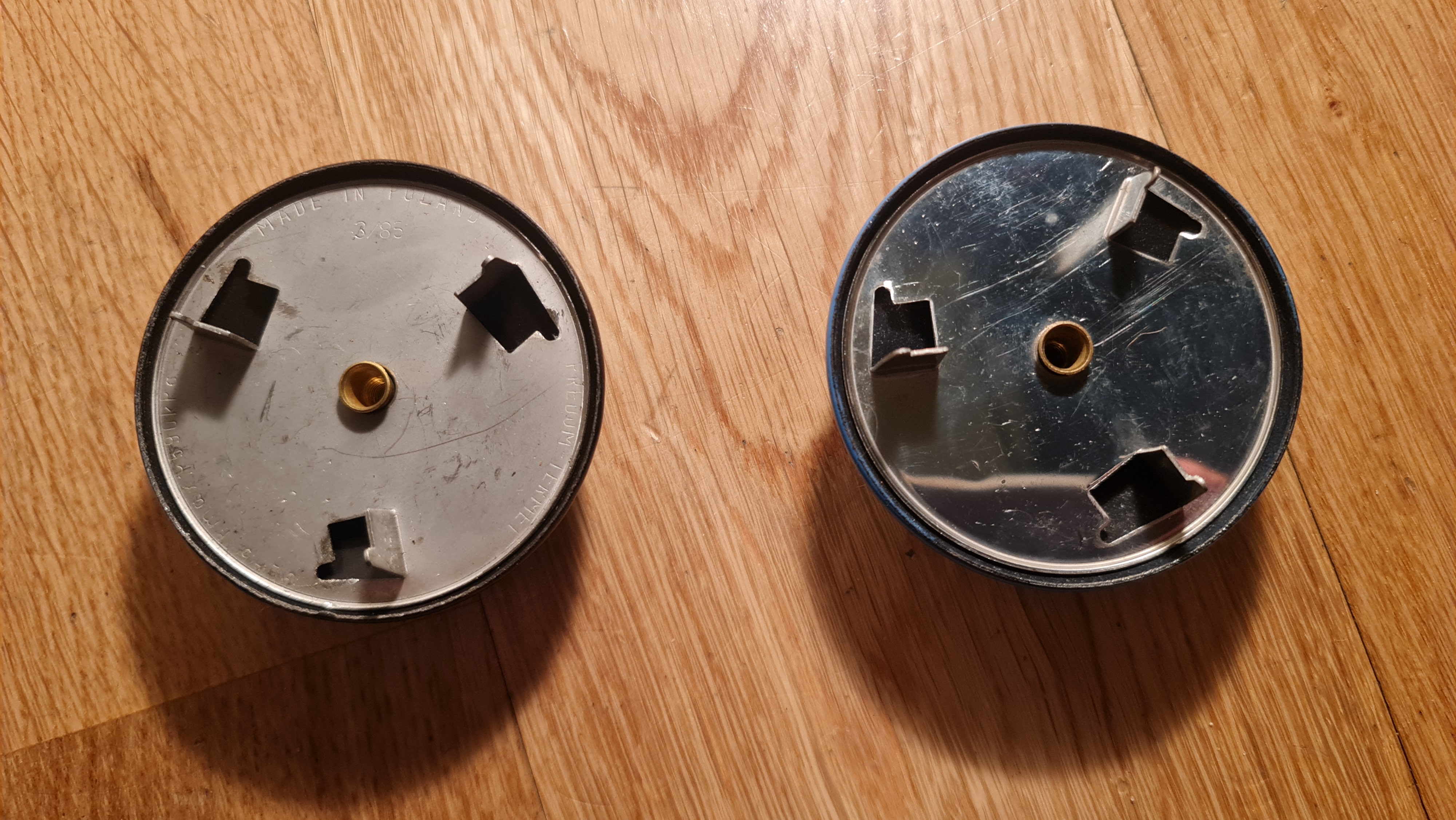 Tak świeci Po lewej jest młodszy daszek z 1985r a z prawej starszy z października 1980 widać że w nowszych modelach informacje są wybite na czapce a w starszejna plakietce ( tylko nie ma daty produkcji ale jest na pudełku). Kiedyś kosztowała 250 starych złotych. Ciekawe ile to w przeliczeniu na obecne. Na podstawie tych lamp widać inflację. Ta z niebieskim daszkiem kosztowałem 250 zl a ta z czarnym już 780 zł ( oczywiście tych starych zł ) i zapomniałem dodać że w tym brązowym pokrowcu jest na przetykacz do dysz.