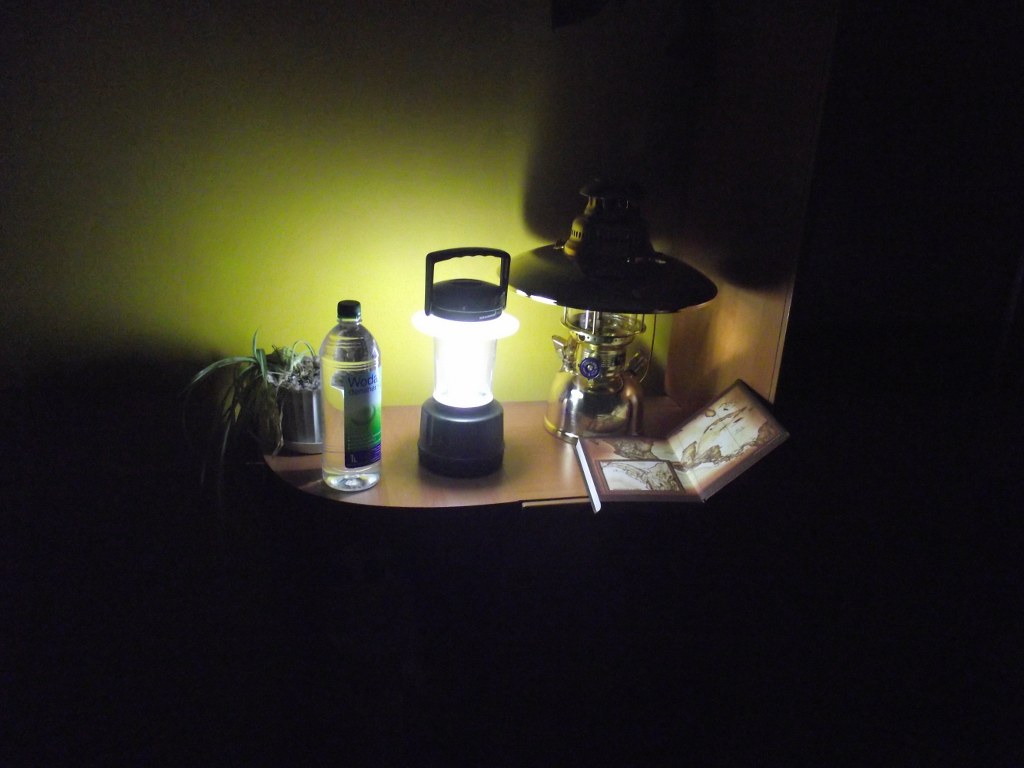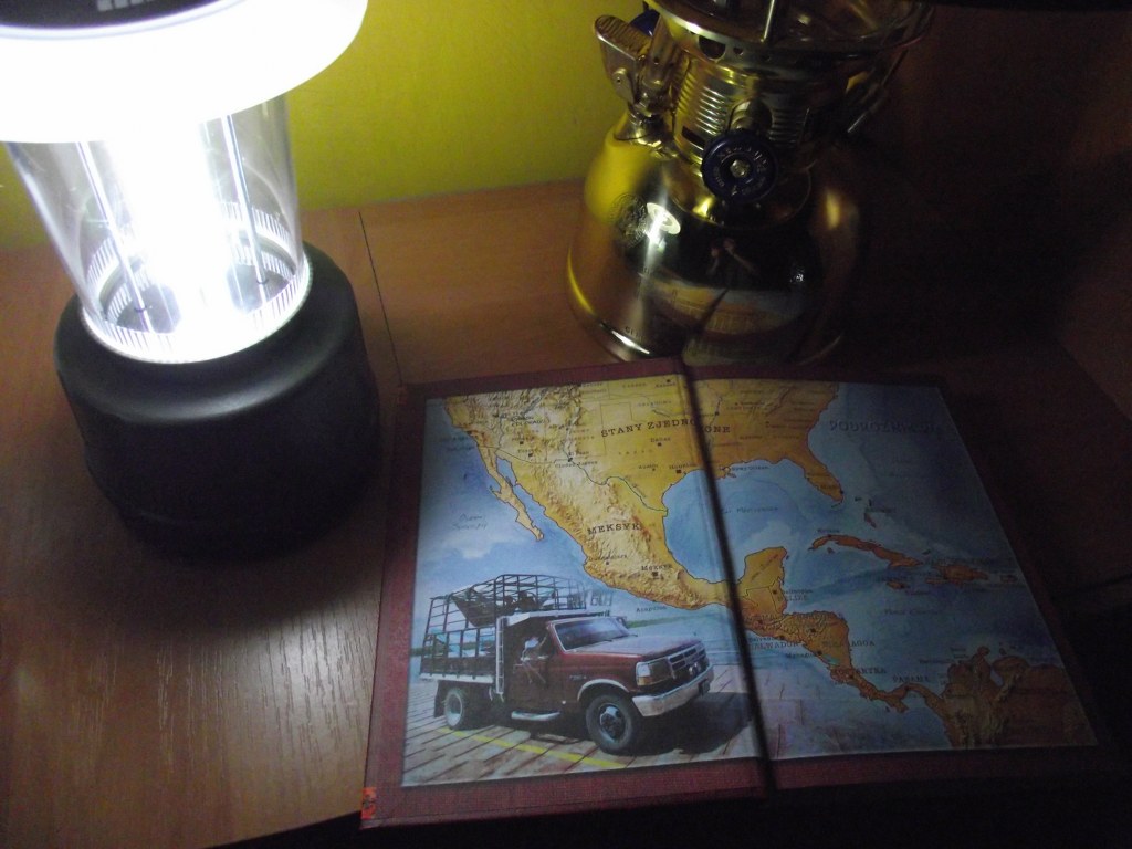 Z doświadczenia: Na 4 akumulatorkach AA 2000mAh czas świecenia wynosił 3,5h. Myślę, że R20 powinny znacznie wydłużyć ten czas. Plastikowe szkiełko jest bardzo podatne na zarysowania. Im mniejsza temperatura otoczenia tym większego napięcia startowego potrzebuje świetlówka. Tak więc często zdarzało mi się ogrzewać latarkę przy ognisku, bo nie chciała się włączyć na lekko używanych bateriach. I nie mówię o sytuacji w zimie. Wystarczyła chłodniejsza letnia noc.