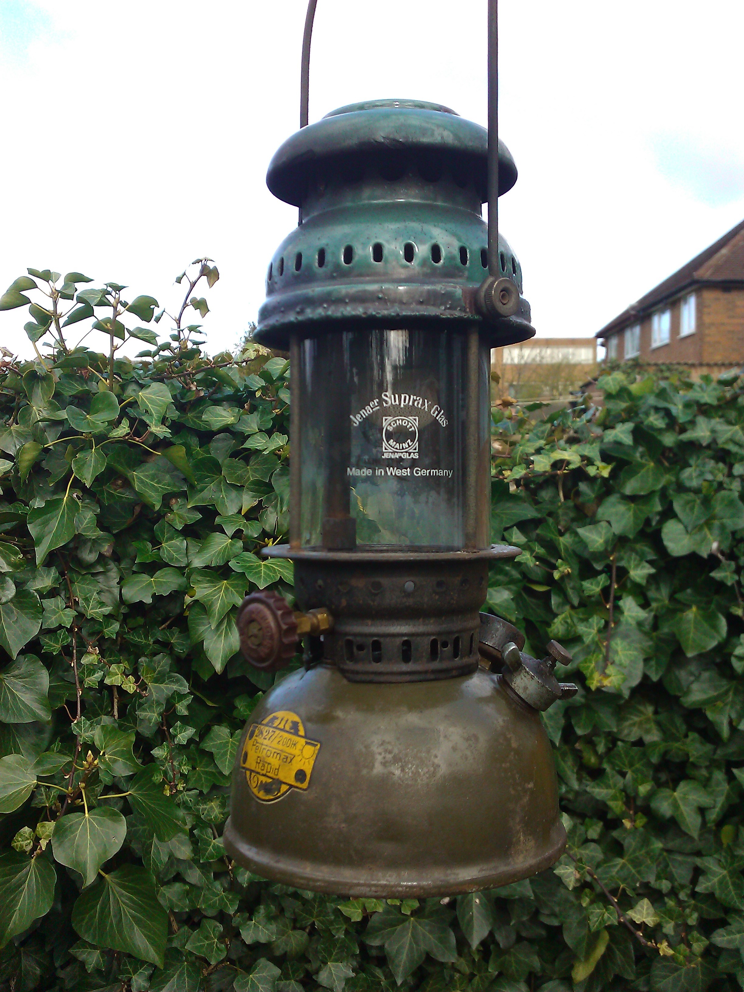 Raz na jakis czas odpalam moje lampy w ramach konserwacji. Wczoraj testowalem drugowojennego Petromaxa 2827, mam ich kilka i raz na jakis czas staram sie je uzywac. Pretekstem byl zakup nowego paliwa i nowej siatki katalitycznej. Staram sie nie uzywac rapida poniewaz nie jest oryginalny z tego modelu co widac na pierwszy rzut oka. Pierwszy raz testowalem lampe przy ulewie i wietrze. Petromax swiecil przez 6 godzin po czym go zgasilem. Rano zrobilem fotke, jest okopcony, wydaje mi sie ze to nowe paliwko, ale swiecil naprawde jasno i bezzapachowo co widac na zdjeciu z altany