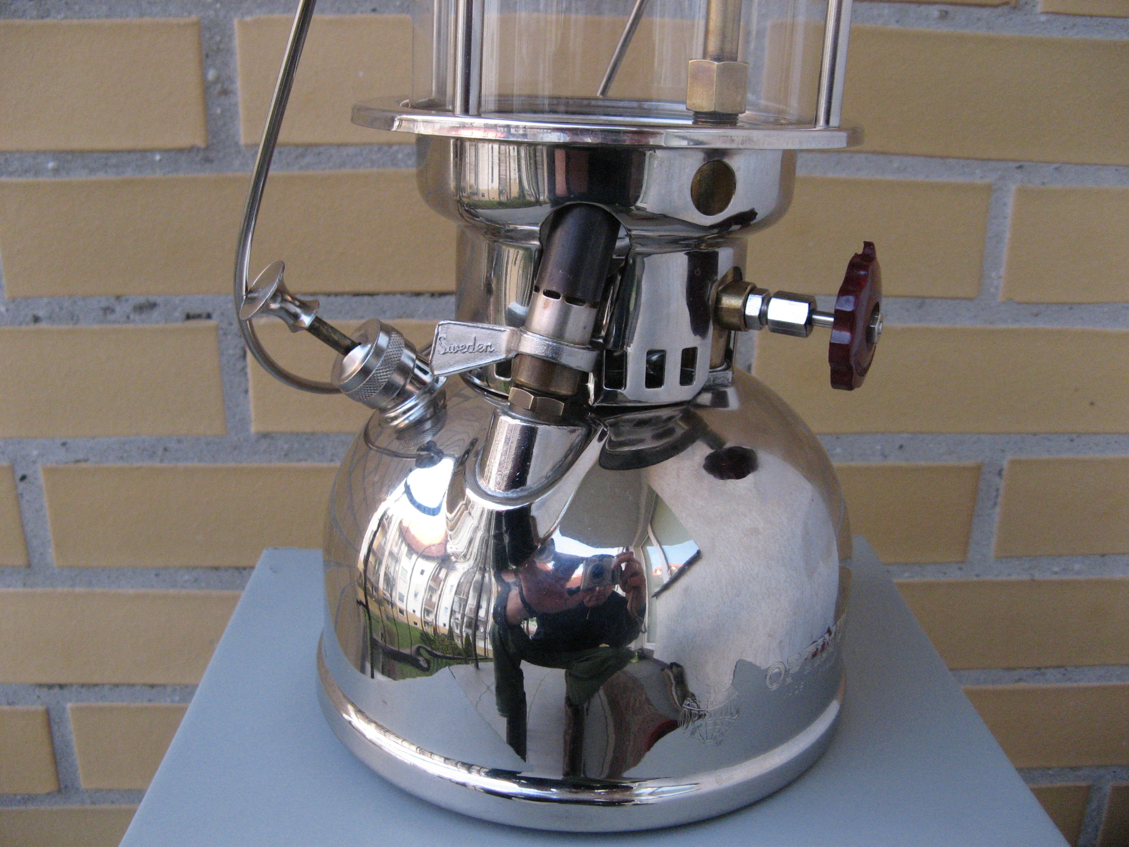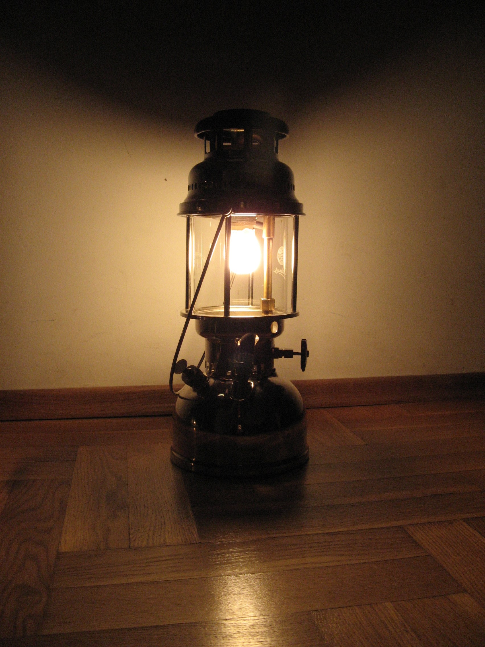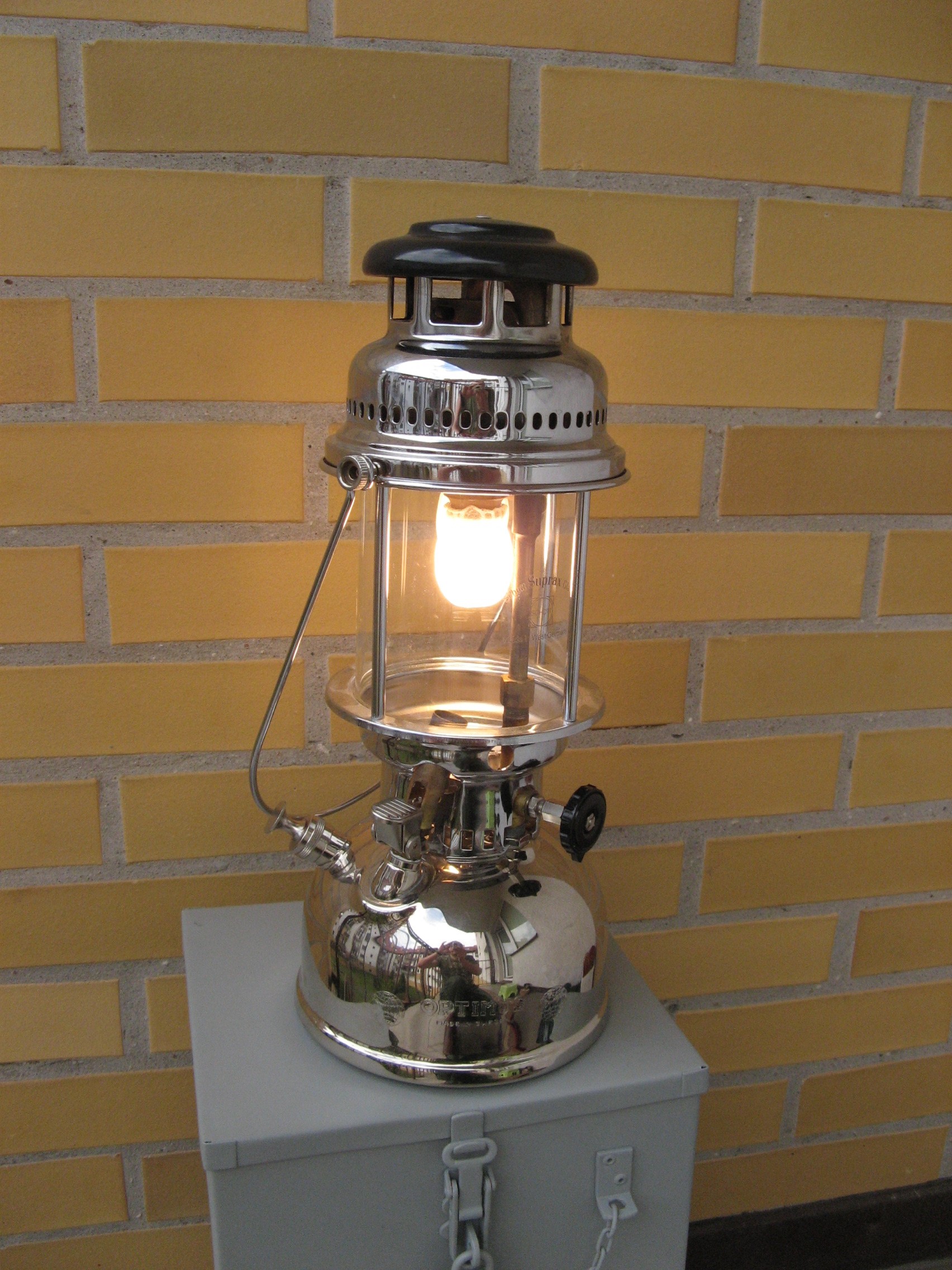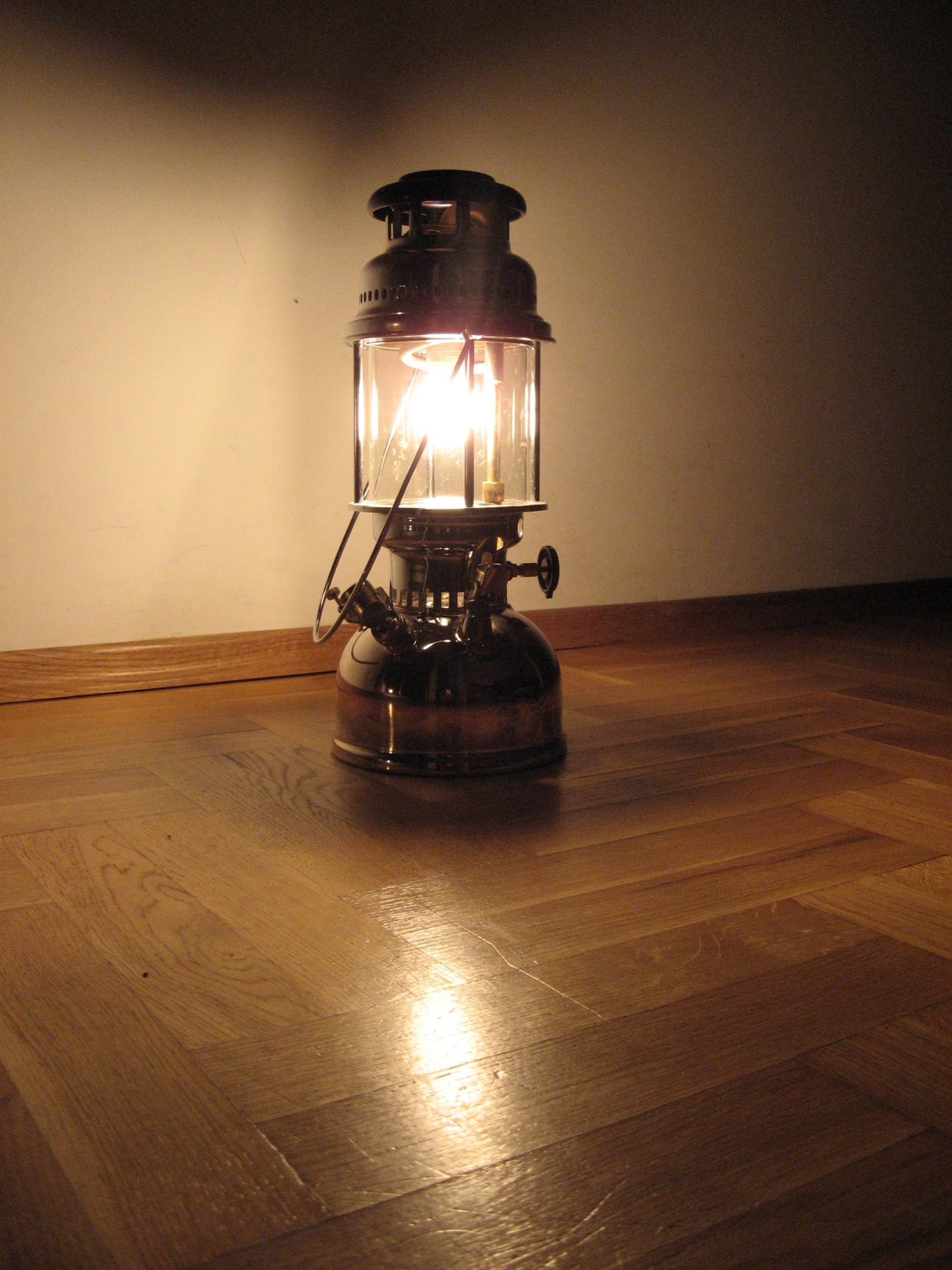 Lampa jest w fabrycznym stanie (NOS), powłoki galwaniczne są oryginalne. Jedyne co zrobiłem, to dorobiłem przyrząd i odkręciłem zaworek od pompki oraz wykręciłem gaźnik, a następnie kupiłem oringi, które przyciąłem żyletką, jak również dotoczyłem w gnieździe wiertarki. Wymieniłem tak zrobione uszczelki gumowe oraz dociąłem z 2mm blaszki ołowianej uszczelki, wyregulowałem iglicę na około 0,5 mm. Posmarowałem też wazeliną techniczną skórzany element pompki. Lampa śmiga aż miło, pali się długo bez dopompowywania. Ciekawe, że przetestowałem ją chatce w Borach Tucholskich w 2017 r. po słynnej nawałnicy, kiedy połamane drzewa zniszczyły sieć energetyczną na wiele dni. Jak zdechło światło moja Żona doceniła sensowność kosztownego hobby i od tamtej chwili kolekcja się rozrosła Smile Olej parafinowy jak w moim pierwszym poście, na znanych portalach kilka osób je sprzedaje. Ponoć są do świec liturgicznych i mniej śmierdzą (kwestia subiektywnej oceny).