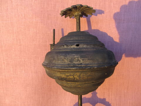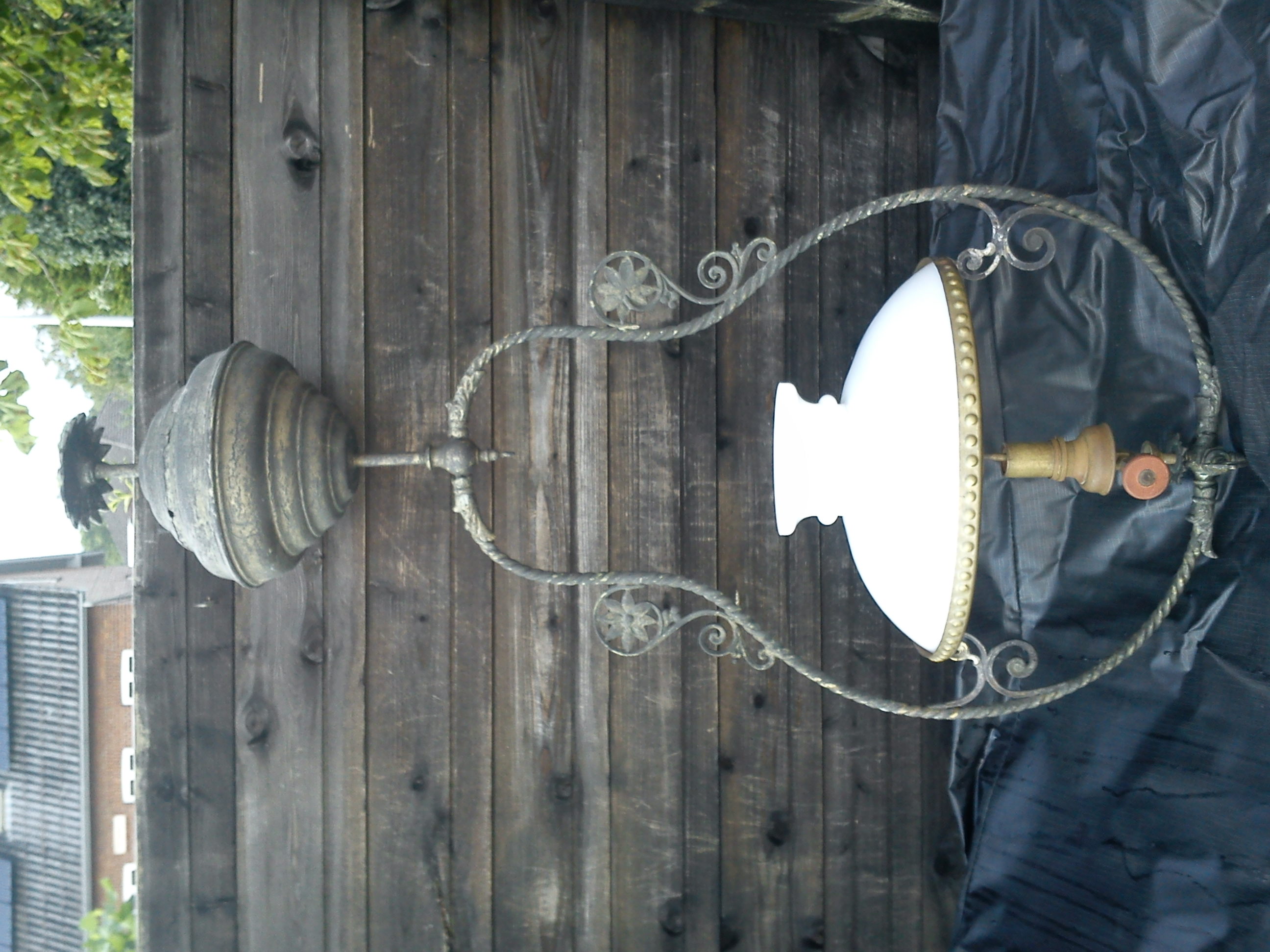 There is a long way to shiny. The lamp came with no shade, no shadering and two broken arms that should hold the shade. The fuelcontrol in the bottom is broke and I have to cut a new coil/thread for the valve-screw (fuelcontrol).