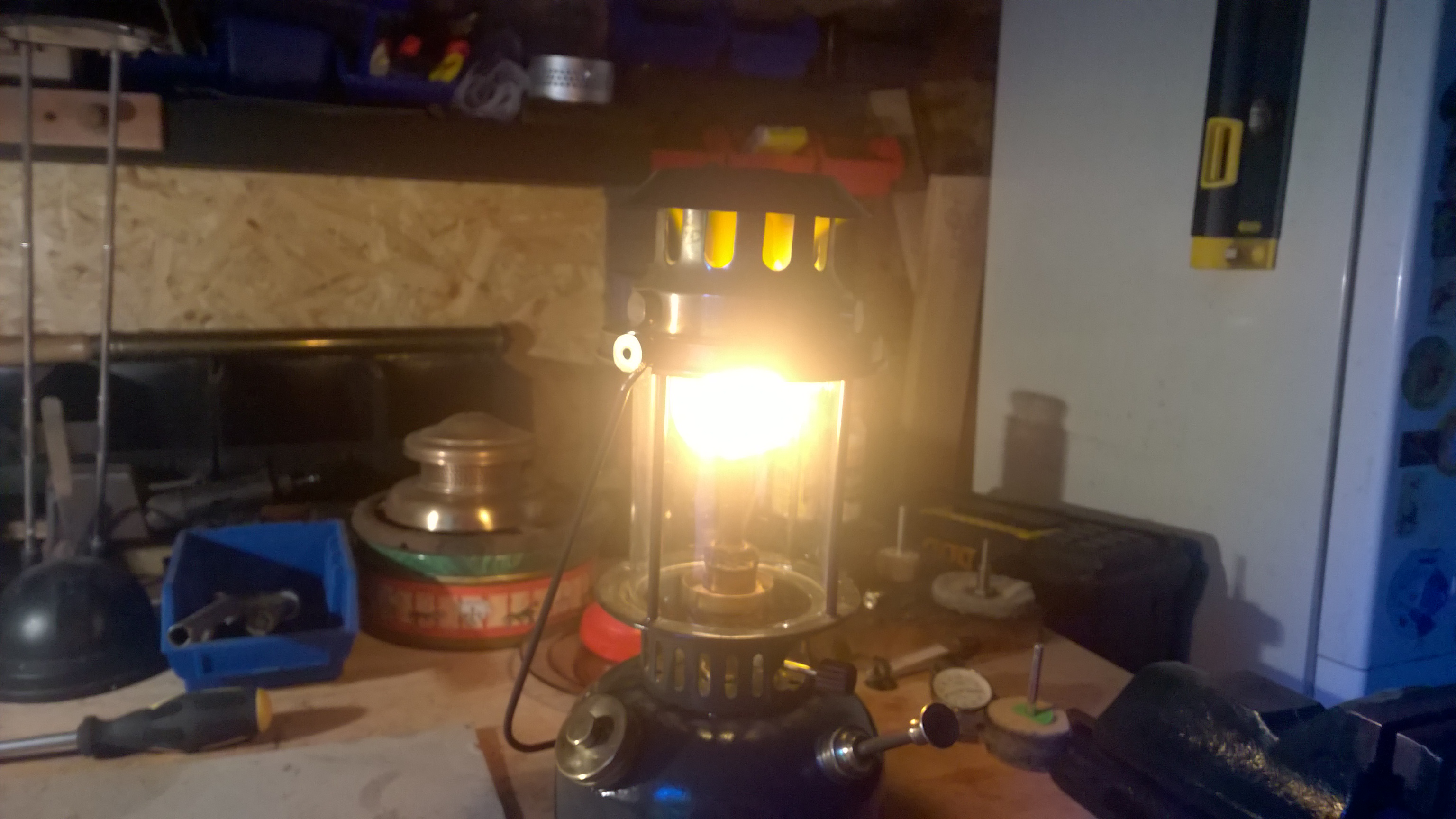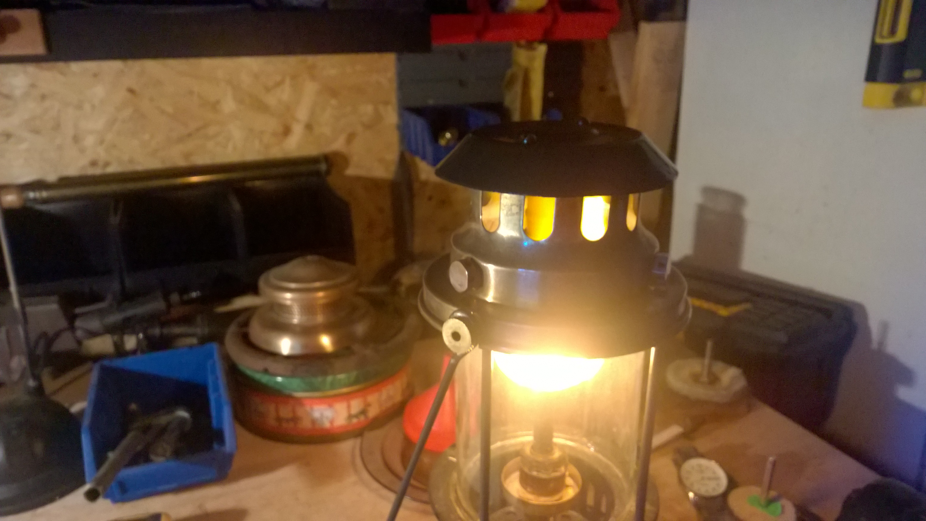 Poza niepełnym i nie białym światłem, duży płomień wychodzi dookoła poza siatkę po pełnym otwarciu a pod czapką jest po prostu ognisko - załączam fotki aby pokazać różnice w świeceniu 2 różnych Vapalux-ów i płomień pod czapką - mam nadzieję, że widoczny bo jasność nie pozwoliła na dobrą fotkę.